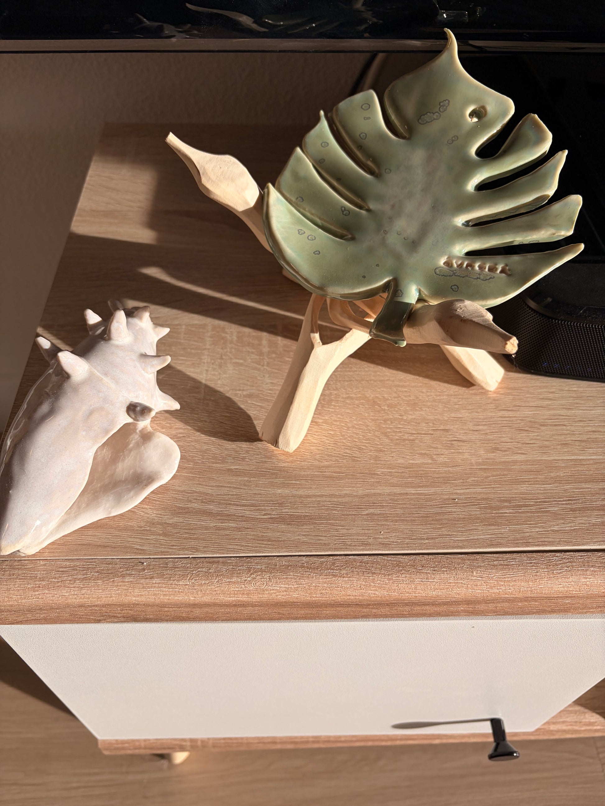 solid green or speckled glaze ring dish 🐆This monstera leaf can be used as an incense holder, storing your jewels, as a coaster, or even decor. ꩜ This piece is inspired by my real-life houseplant, “Monster” who stays with me during pottery sessions. She infuses us with the best energy throughout the process!