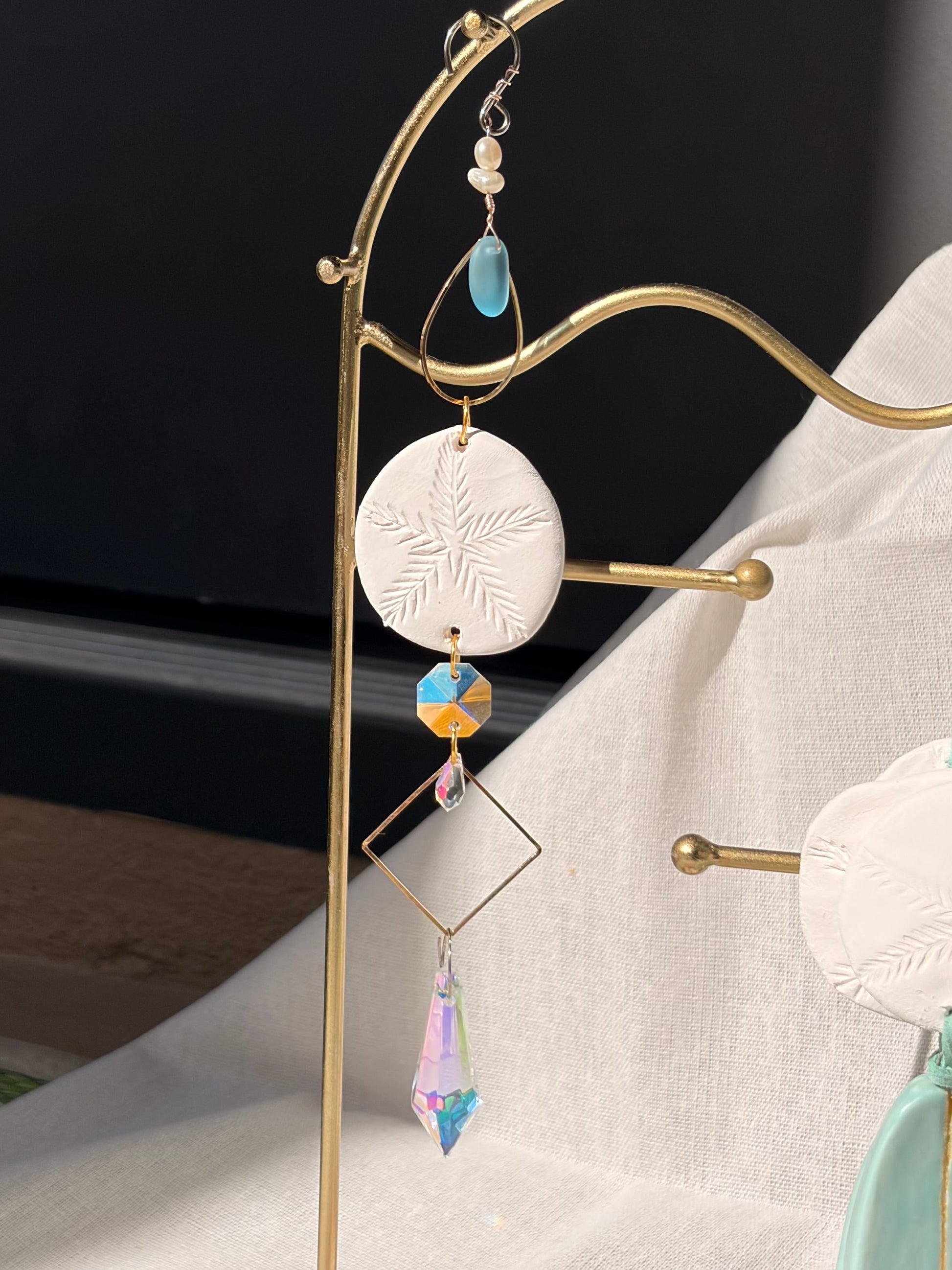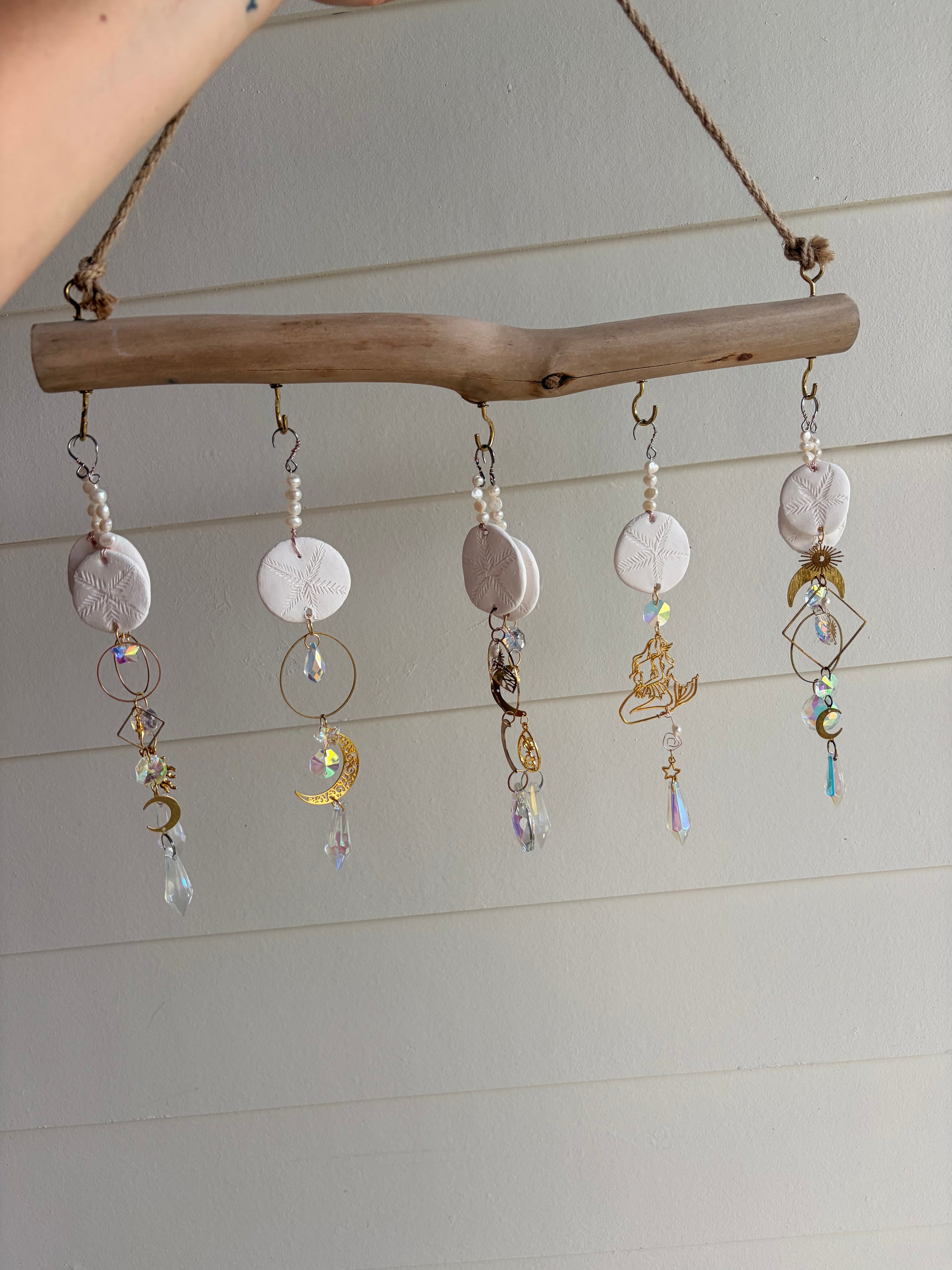 Each suncatcher is uniquely handcrafted using a mix of natural and artisan elements, including: